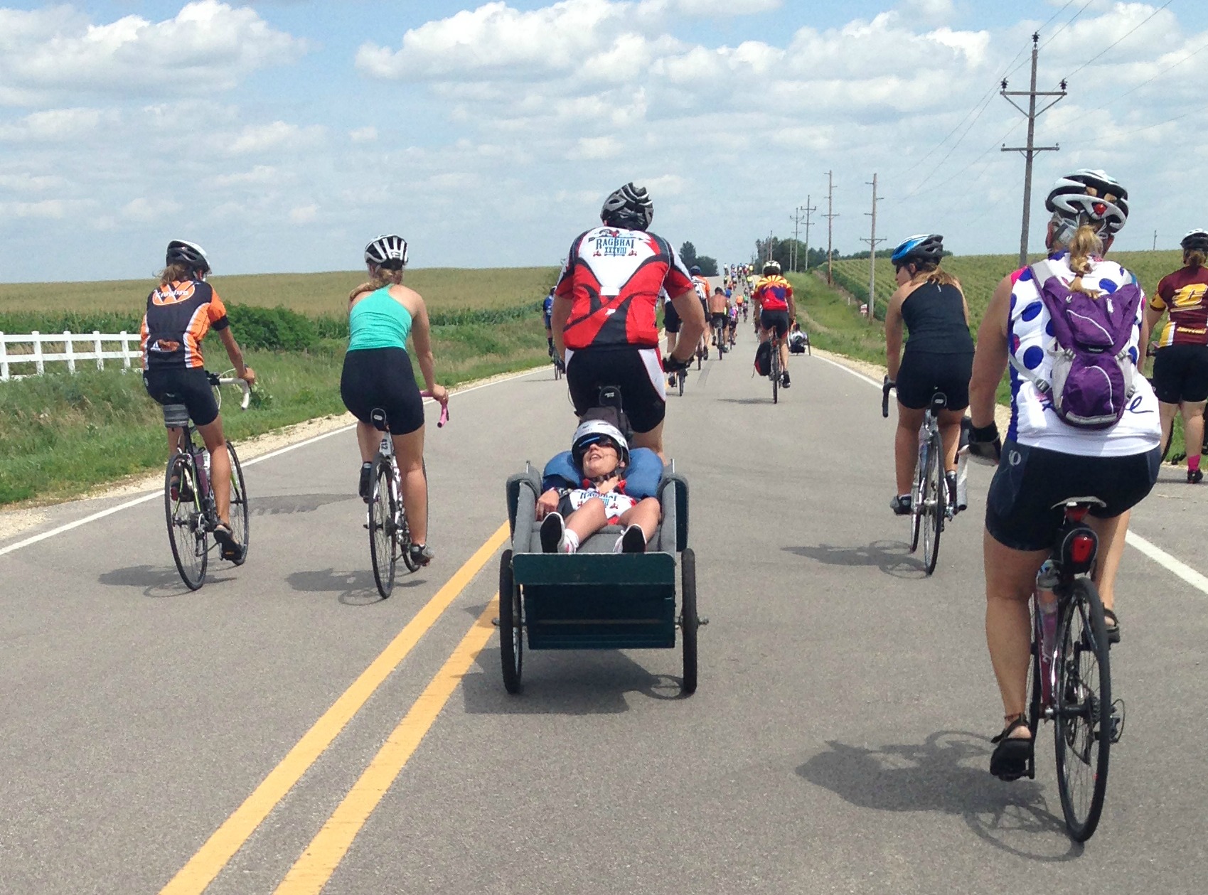 Witness the father who pedaled his son across the state of Iowa. His son, crippled with cerebral palsy, had a grand time on the back of his father’s bike, shouting “go faster” as they descended down a hill and asking “what’s up around the bend” with every turn. I pedaled most of an afternoon near this rider and his son and it was truly inspirational.